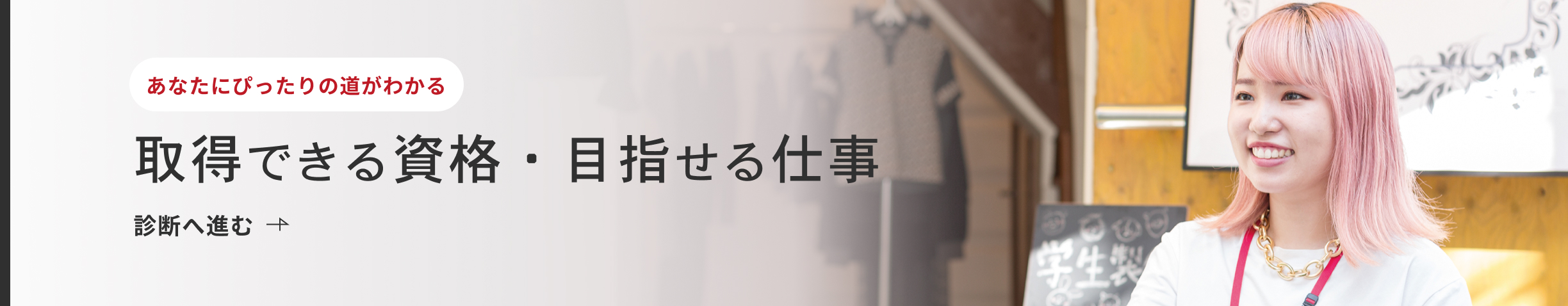 「考案」「創造」「接客」「表現」あなたの夢に必要な資格の種類、あなたの夢のカタチを3学科から。