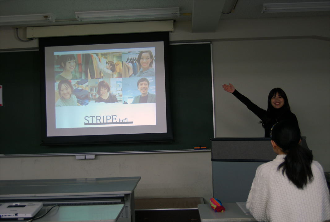 本日は株式会社ストライプインターナショナルの人事部の方から会社の案内をしていただきました。 earth music&ecology 、E hyphen world galleryなどの人気ブランドを多く抱えている企業なので学生達も真剣な眼差しで聞いていました。 多忙の中お越し頂き本当にありがとうございました。 ...