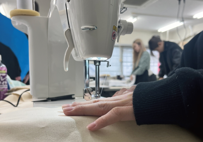 さまざまな縫製用具の用途やミシンの使い方から手縫いなど、ベーシックアイテムの制作を通じて各アイテムの縫製方法と手順を学びます。2年次での期間限定ショップ『incubate』の商品制作やincubate collection制作に向けての土台作りです。