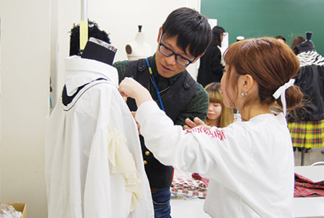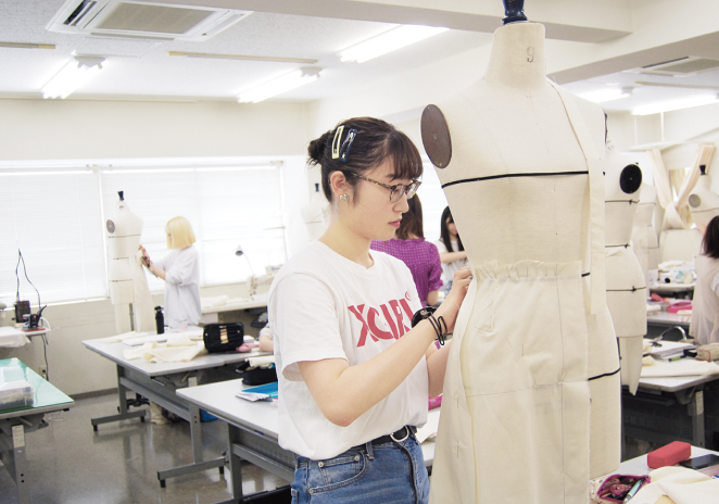 1年次にはデザインする力、パターンをつくる力、繕う・形にする力を身につけます。2年次には、ショップやショーの準備を通して、1年次に身につけた力をさらに実践的に学びます。