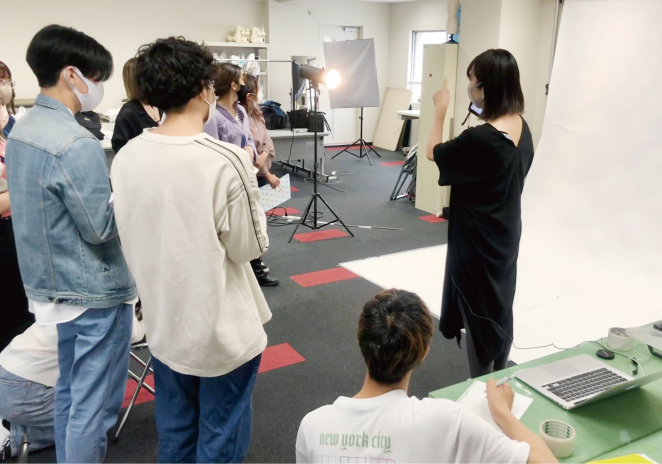 カメラや撮影機材の操作方法と基本的な撮影技術を習得し、自身でプランニングしたコーディネート作品を適切な写真表現で撮影できるテクニックを身につけます。ロケ撮影とスタジオ撮影の両方を行い、どのような状況下でも美しくモデルが映える対応力を学びます。