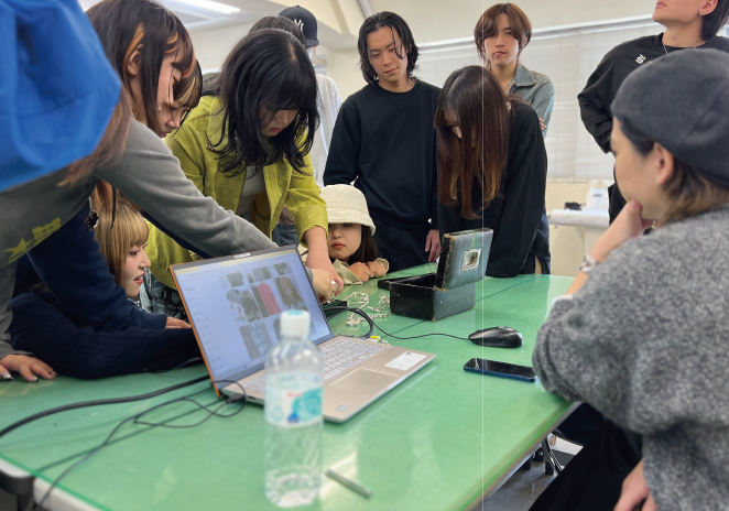 - ・スタイリング実習で着こなしのバランスを学んだり、リメイク製作の作品を着こなすことで、オリジナルなコーディネートを実践する。