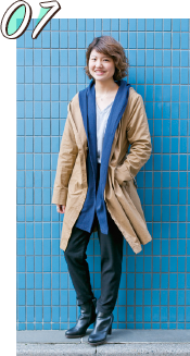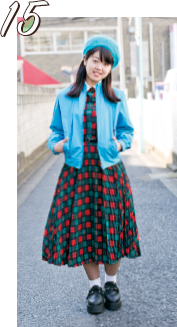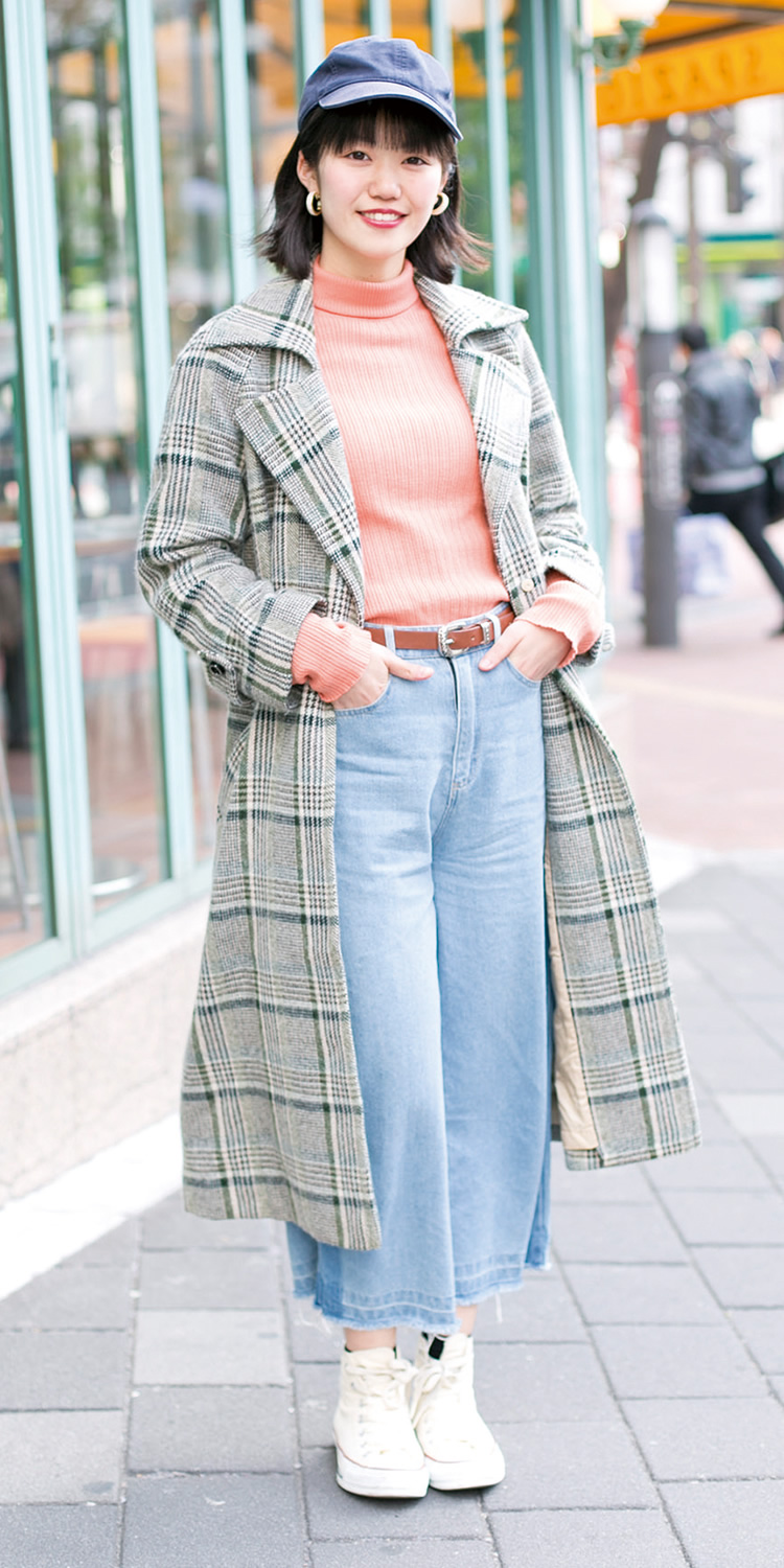 水色のジャケットがポイントです。「かわいらしさ」と「かっこ良さ」を組み合わせるように心がけています。