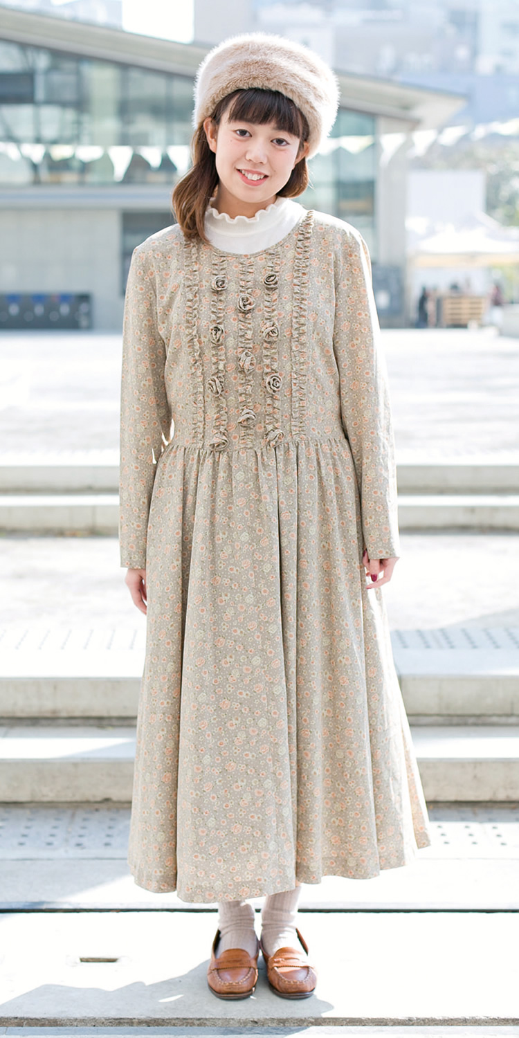 古着屋さんで買ったワンピースがポイントです。あとは帽子。さわり心地がすごく気持ちいいんです!