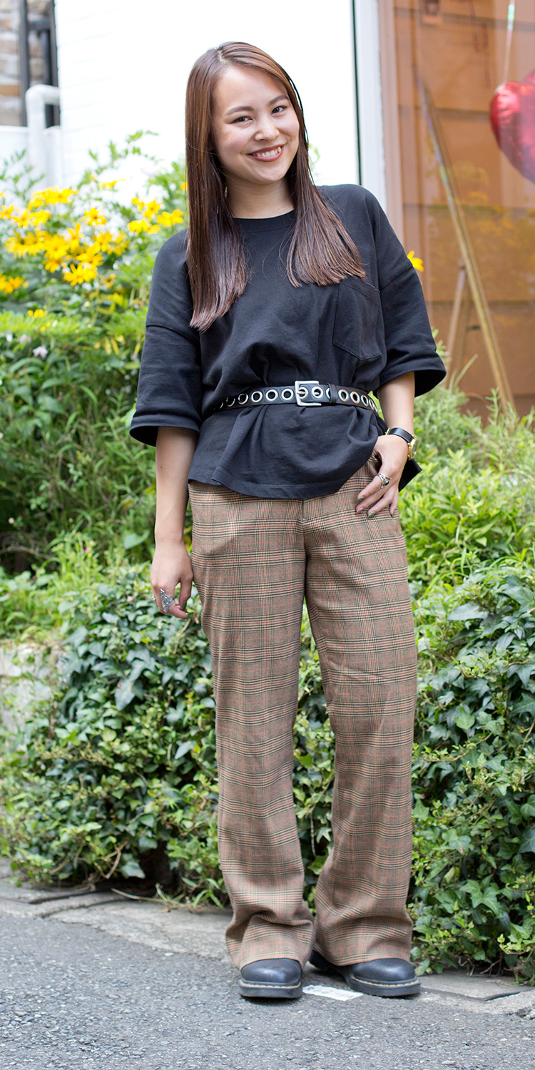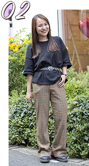 茶色のチェックのパンツで秋っぽさを出しました。