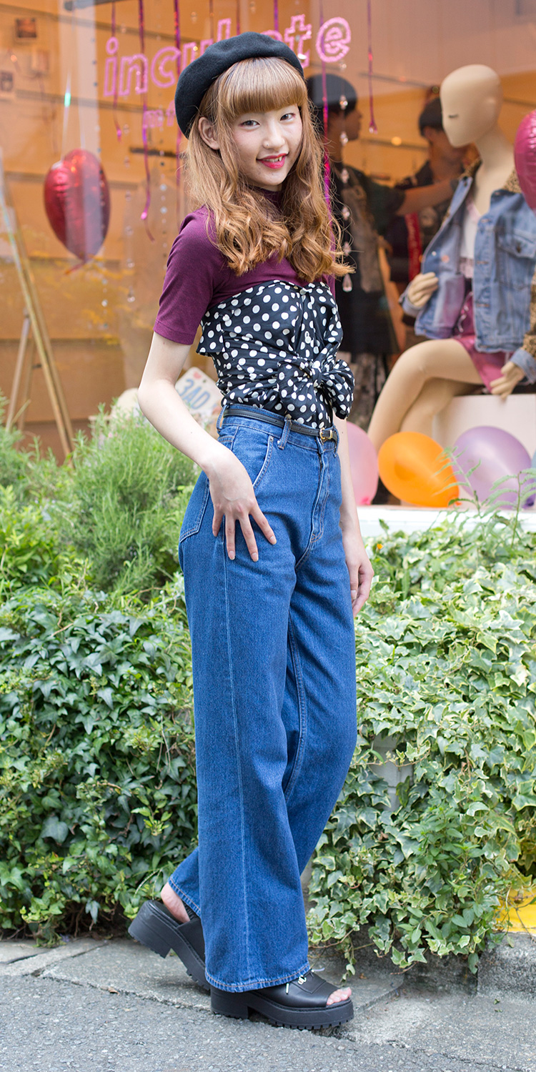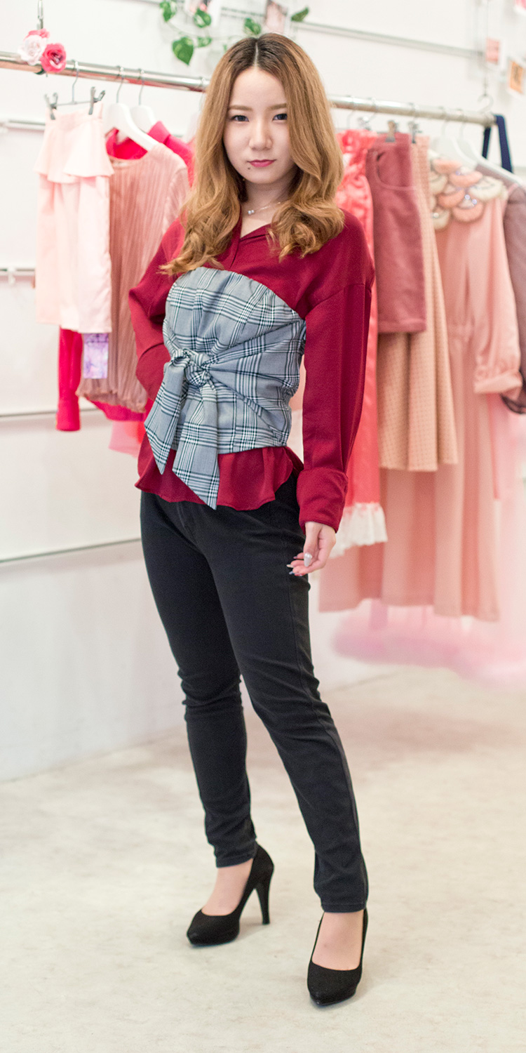 シャツをビスチェ風に着ているところです。