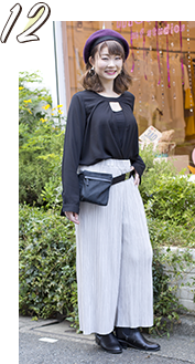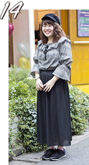 アシンメトリーなロングスカートで秋っぽさを出した。