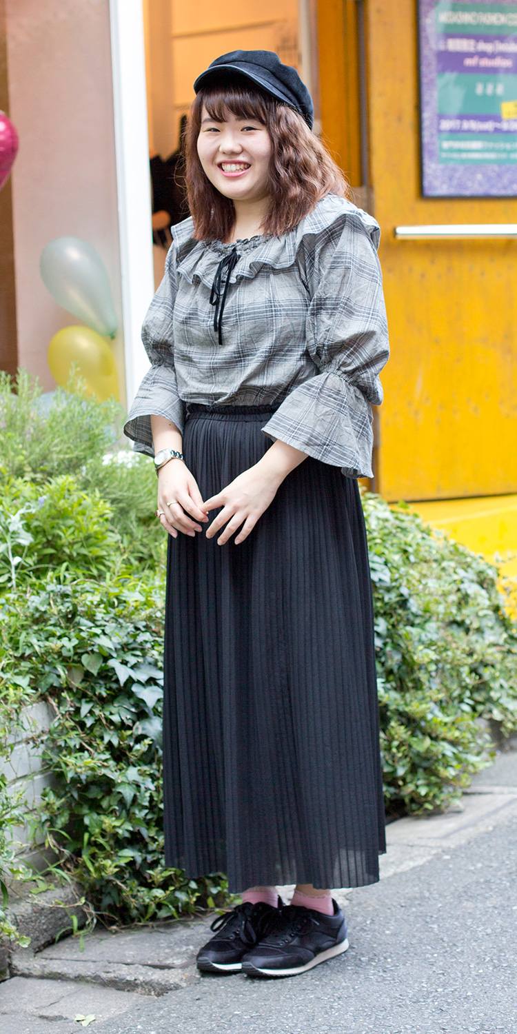 グレンチェックのブラウスをインしてバランスとってみました