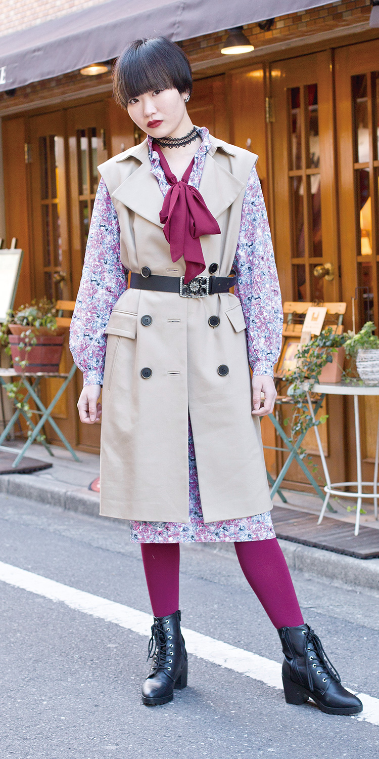シャツを使ったビスチェがポイント。ベレー帽も最近のお気に入りです。