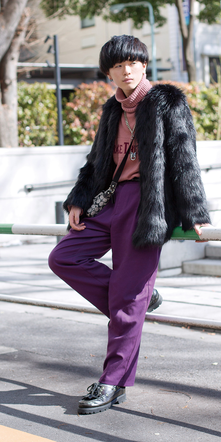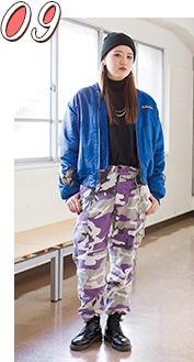 レディースアイテムを使って、ジェンダーレスなスタイルを意識。