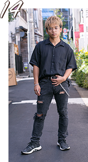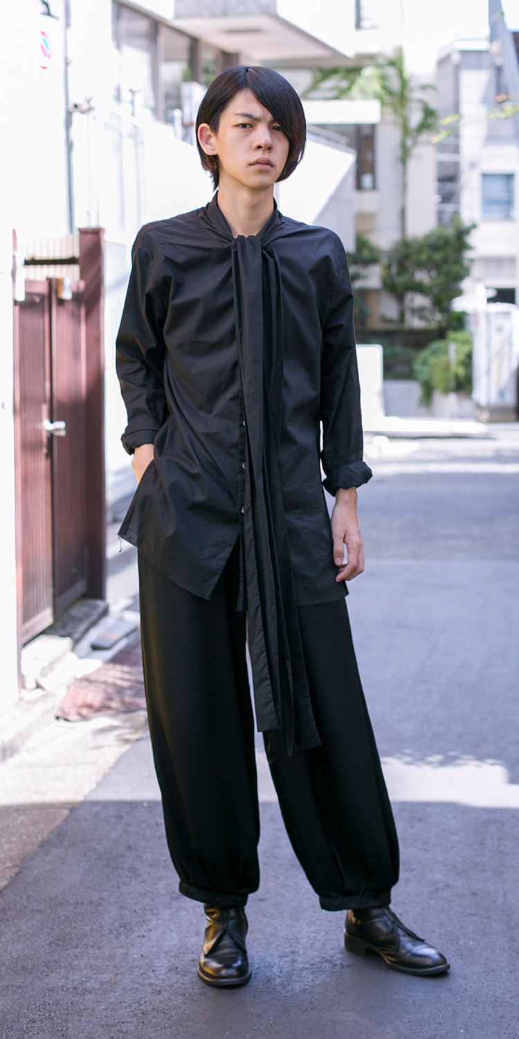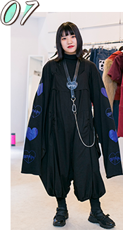 ブラックでまとめ、ロングスリーブで個性をだす。