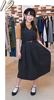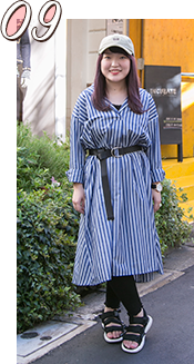 ワンピースがゆったりしているので、ベルトをしてすっきり見えるようにしています。