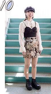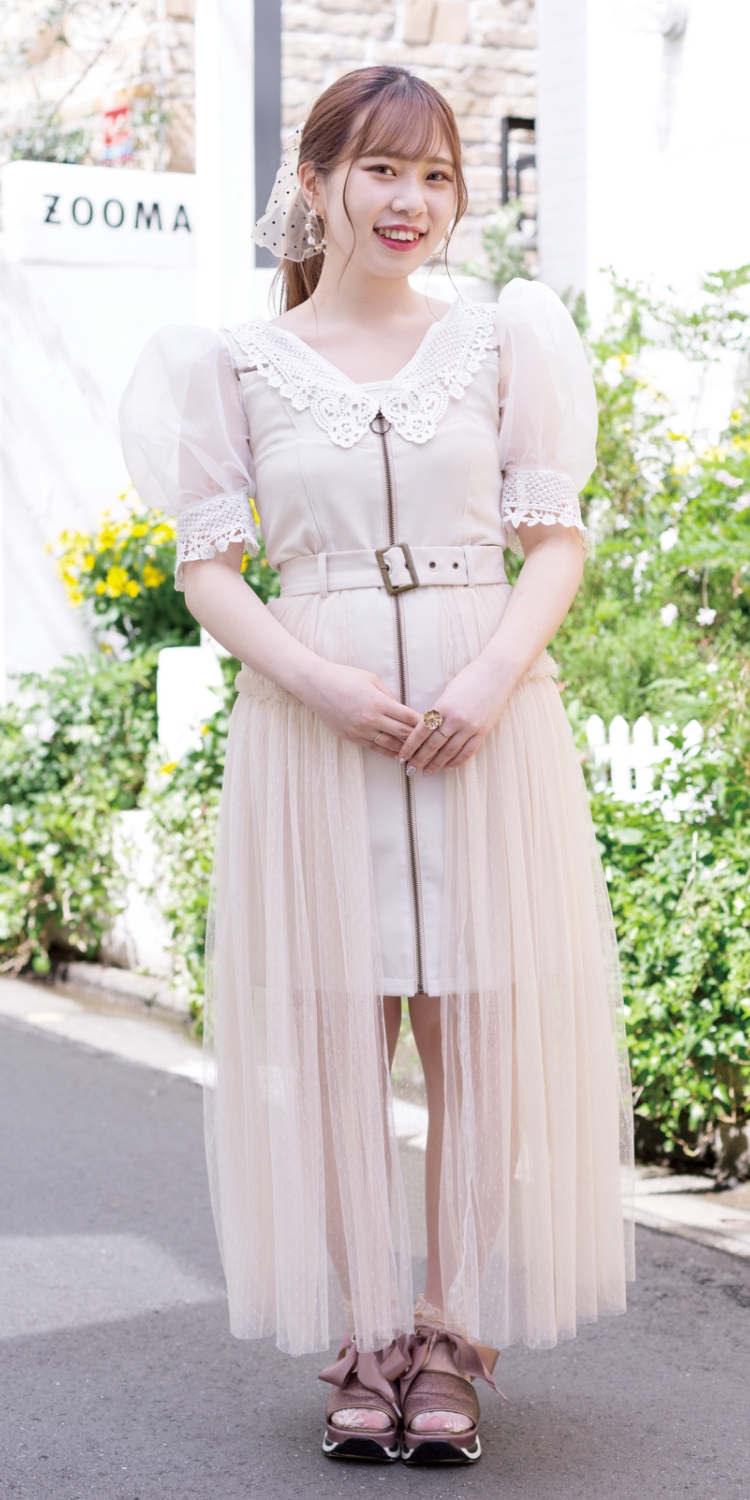レース使いが印象的な一着で、春らしいコーデにしました。