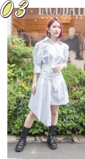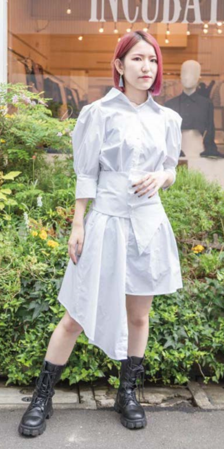 アシンメトリーな丈とボリュームのある袖で誰よりも個性的な意識をしました。