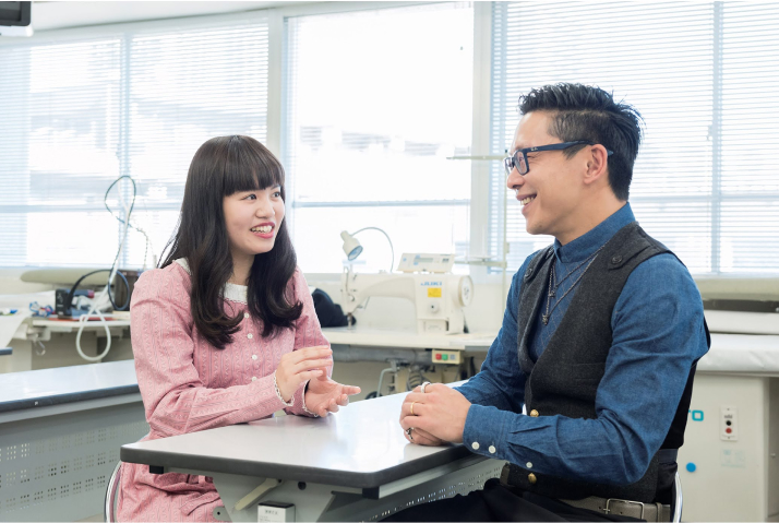 『職業実践専門課程』認定校である武蔵野ファッションカレッジは、就職を前提にした2年間の教育プログラムを実践しています。進路指導室に通うのではなく、教室にいる担任が責任を持って就職をサポート。常に「就職」を意識できる環境をつくっています。